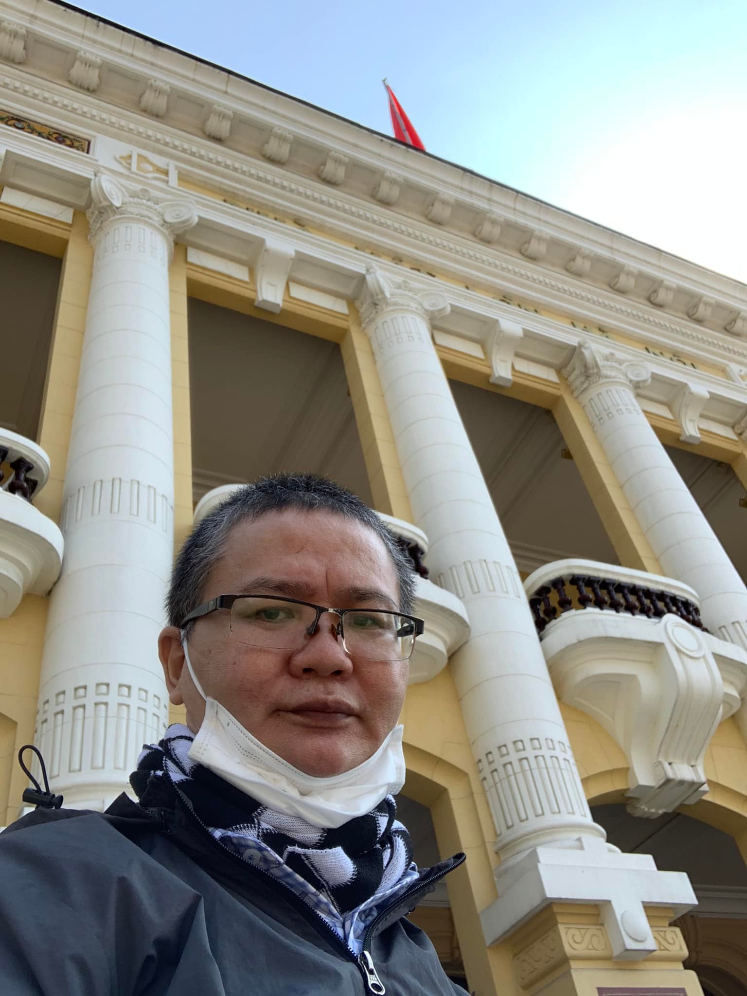 Bật mí luôn. Đây là nhà hát lớn Hà Nội. Mình phụ trách âm thanh ánh sáng. Cụ thể là bê loa đài.