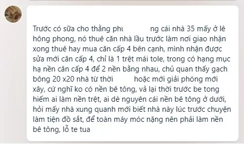 Ỷ y nền gạch bông, nhận kèo hạ thấp nền tưởng nền lăm le bình thường, ngờ đâu nền BÊ TÔNG vì lúc trước nó là làm cơ khí.