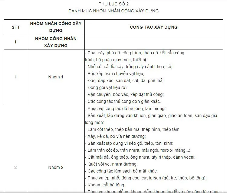 Lưu ý về nhóm nhân công theo quy định mới.