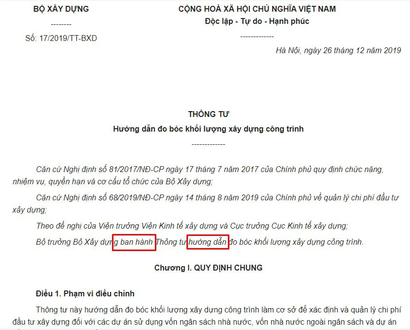 CHÉM BÃO - Về cái Thông tư 17/2019/TT-BXD hướng dẫn đo bóc khối lượng xây dựng công trình
