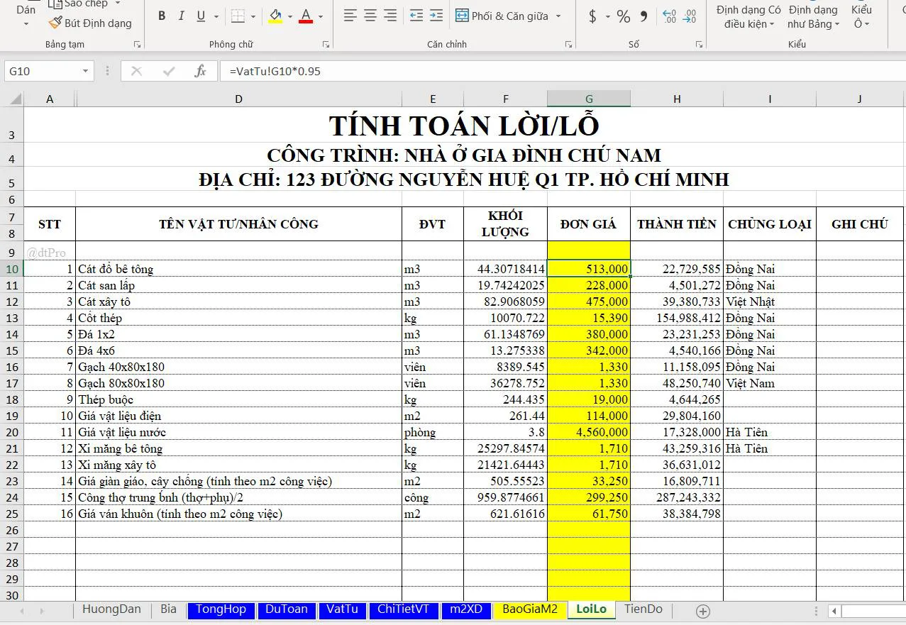 Phần mềm dtPro MyHouse có thể tính được cả dự toán để các bạn báo giá, tính được cả LỜI LỖ THỰC TẾ để các bạn hạch toán chi phí lời lỗ. Từ đó các bạn sẽ quyết định báo giá bao nhiêu là phù hợp.