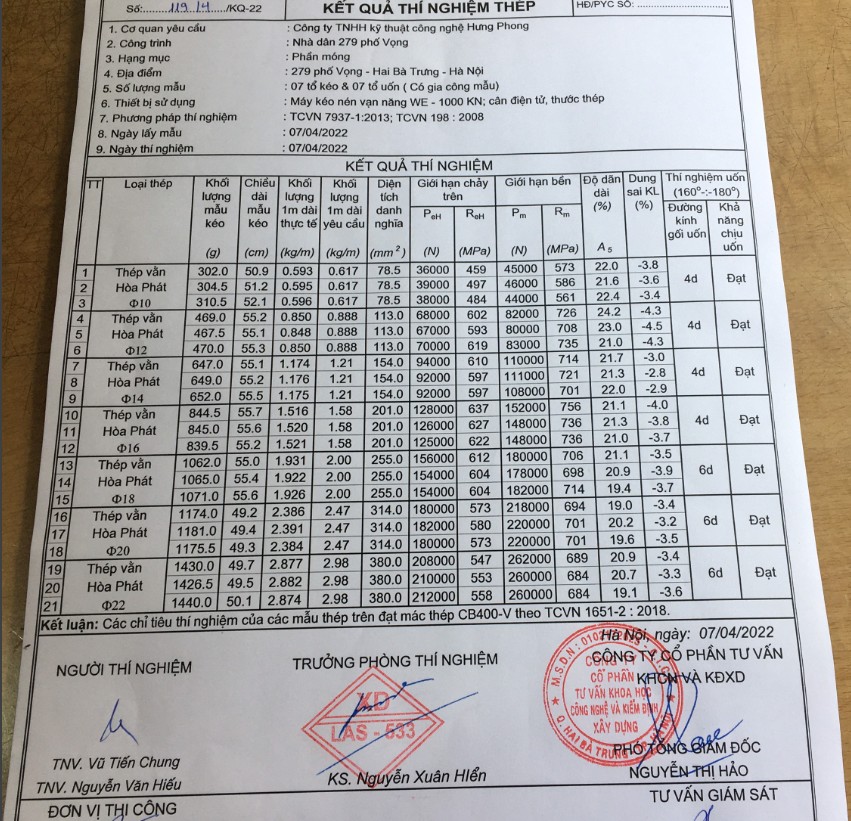 Theo quy định thì mỗi đợt lấy vật tư về đều phải thí nghiệm. Nhưng với nhà dân đa số bỏ qua khâu này, lấy thép về thì cứ đúng nhãn mác là OK rồi.