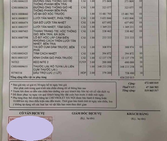 Hôm nay xem trên mạng có cái báo giá sửa chữa, xe đâm đụng chỉ hỏng phần đầu, mà đã hết nửa giá xe. (hình)
