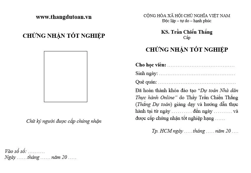 Dành cho học viên khóa "Dự toán nhà dân Online"