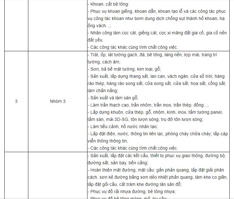 Lưu ý về nhóm nhân công theo quy định mới.