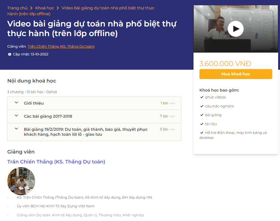 Cuối năm 2021 có mở một lớp online với nội dung mở rộng, bao gồm cả phần lựa chọn phân khúc, dự toán giá thành ... Bài giảng cũng được up trên www.thangdutoan.com, các bạn tìm xem nhé.