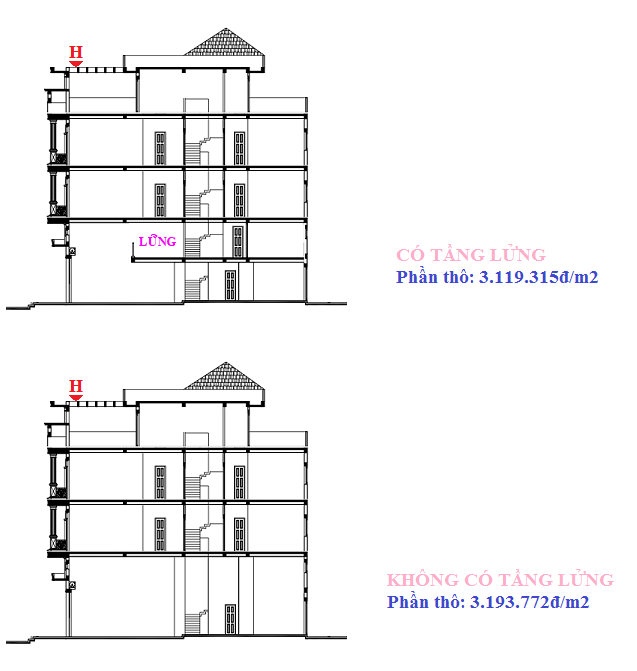 ĐƠN GIÁ: NHÀ CÓ TẦNG LỬNG VÀ KHÔNG TẦNG LỬNG?