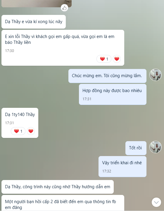 Còn có nhiều khóa học giúp anh em thuyết phục khách hàng, ký hợp đồng, tính toán chi phí lợi nhuận để công trình nào cũng có lời.