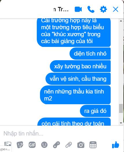 Một trường hợp kinh điển, mà tôi đã từng mắc, không phải chỉ 1 lần. Cứ tính m2 m2, xong nhẩm nhẩm nhận đại. Rồi tới cuối công trình há mồm ra vì lỗ.
