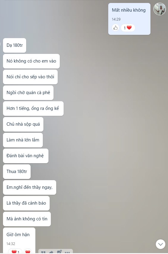 - Khi bạn tỉnh ra là bị lừa, cũng không dám báo công an, vì MÌNH CŨNG ĐÁNH BẠC mà. Nói chung có vài người mạnh, nhờ được người mạnh thì có thể gỡ gạc. Còn không thì mất.