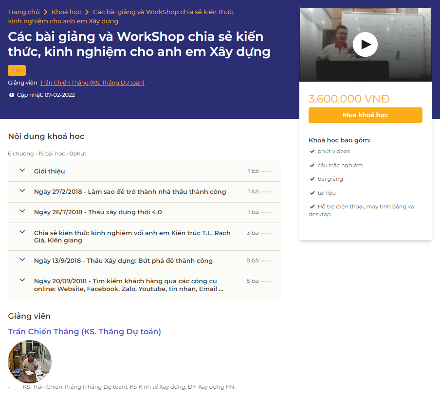 Các videos các buổi WorkShop (buổi trao đổi kiến thức, kỹ năng về các chủ đề trong lĩnh vực Xây dựng do KS. Thắng Dự toán tổ chức tại văn phòng công ty) với mục đích chia sẻ kiến thức kinh nghiệm giúp anh em Xây dựng làm tốt hơn, thành công hơn (và sẽ mua phần mềm nhiều hơn, mua khóa học nhiều hơn).