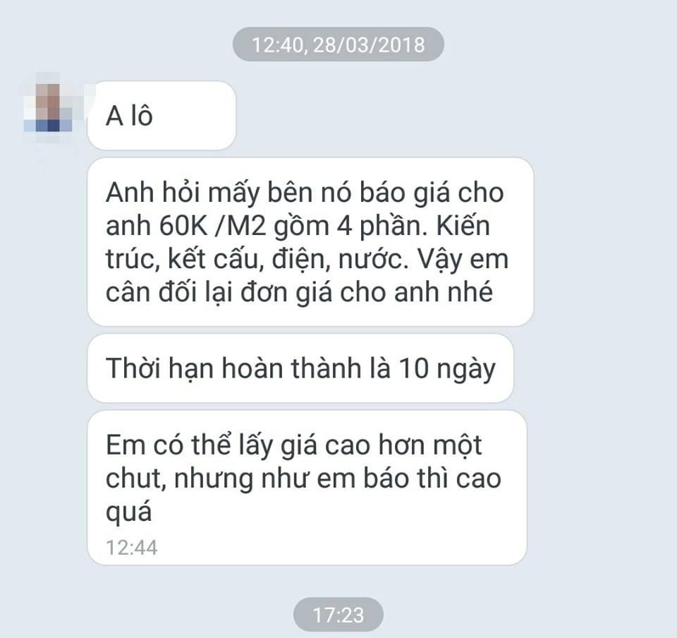 Mình cũng lăn lộn mãi, mình quá rành rồi. Với công nghệ copy cắt dán như ngày nay, có khi 30.000đ/m2 nó cũng làm được. Giờ trong ổ cứng ông nào chẳng có cả ngàn cái, cả tự làm, sưu tầm từ anh em, cả sưu tầm trên Internet, các kiểu 4x16 5x20 cao thấp 3,4,5,6 tầng có cả. Cứ bốc cái nào gần giống nhất xong sửa sang tí, quất 60.000đ/m2 ngon choét.