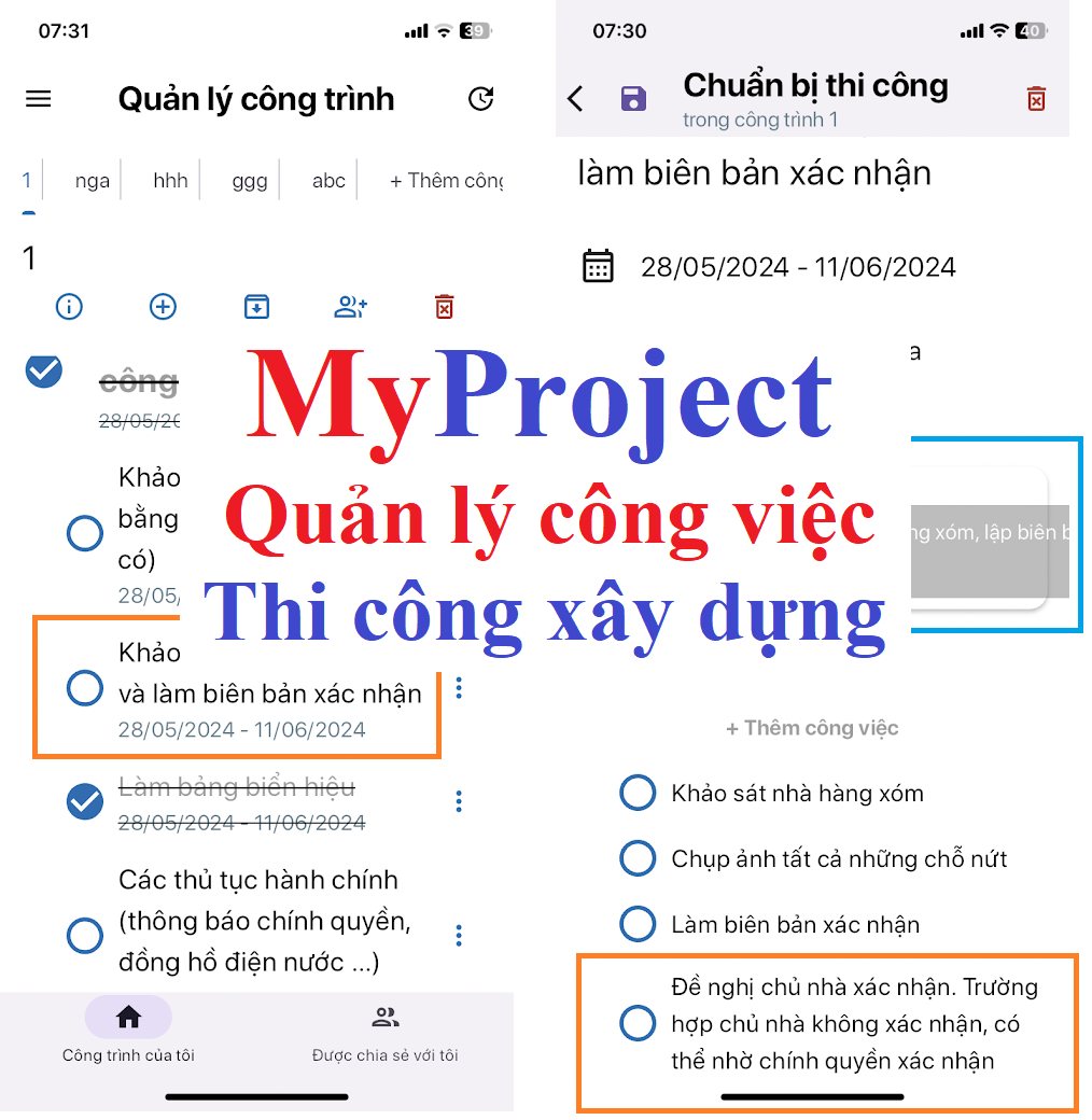 App Quản lý công việc thi công MyProject có thể hỗ trợ bạn.