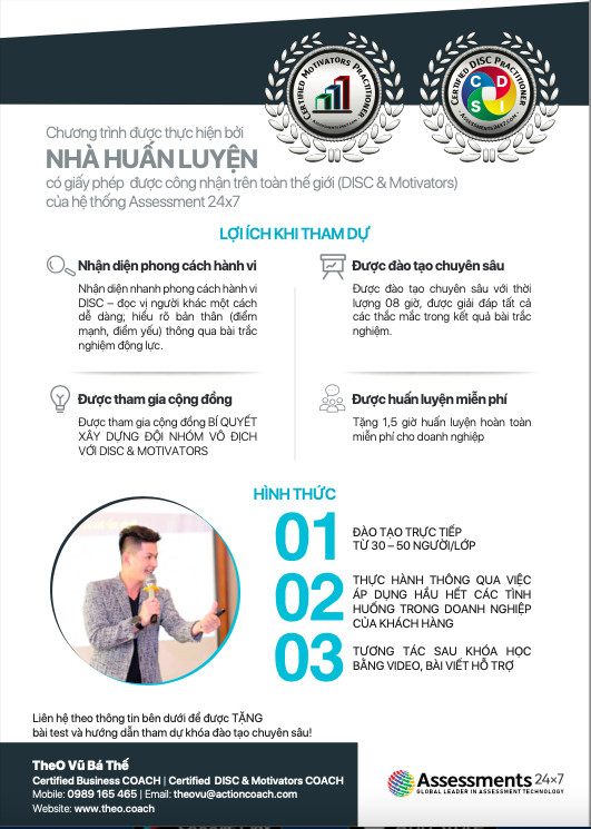 Khi tôi đưa bài test DISC và Motivators của mình cho Coach TheO, TheO phán những câu làm tôi bật ngửa. Nó quá đúng, quá chính xác với mình. Nhưng từ trước tới giờ, mình coi nó là đúng, là một phần của mình. Nhưng với cách đặt câu hỏi của TheO, mình đã nhận ra những điều mình cần phải thay đổi.