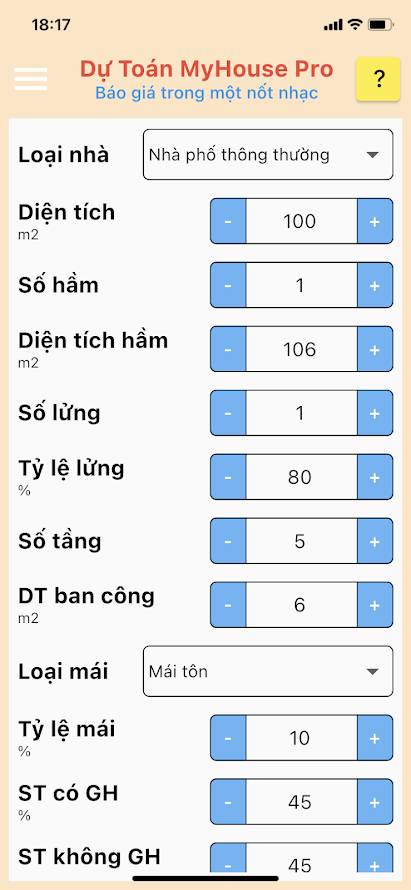- Đã có thể nhập thêm tầng hầm, tầng lửng, ban công, mái. Tỷ lệ lửng, tỷ lệ mái, từ đó App tính ra diện tích sàn, hầm, lửng ...