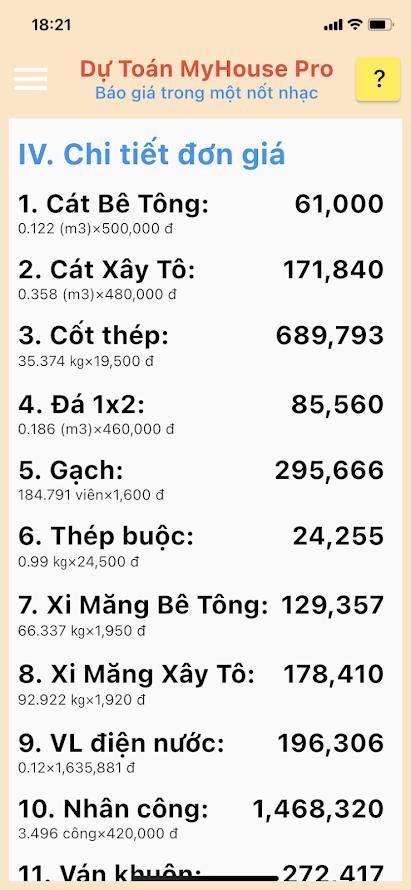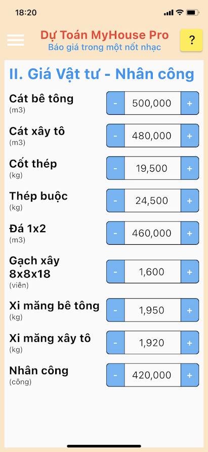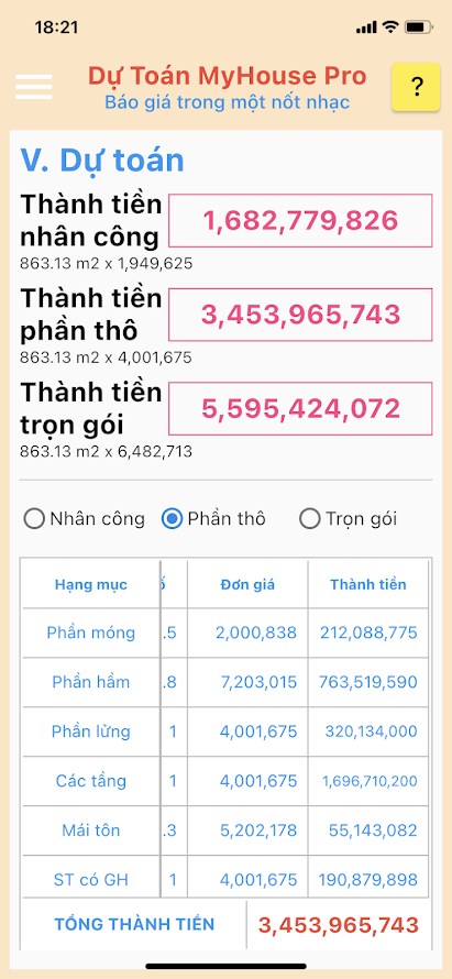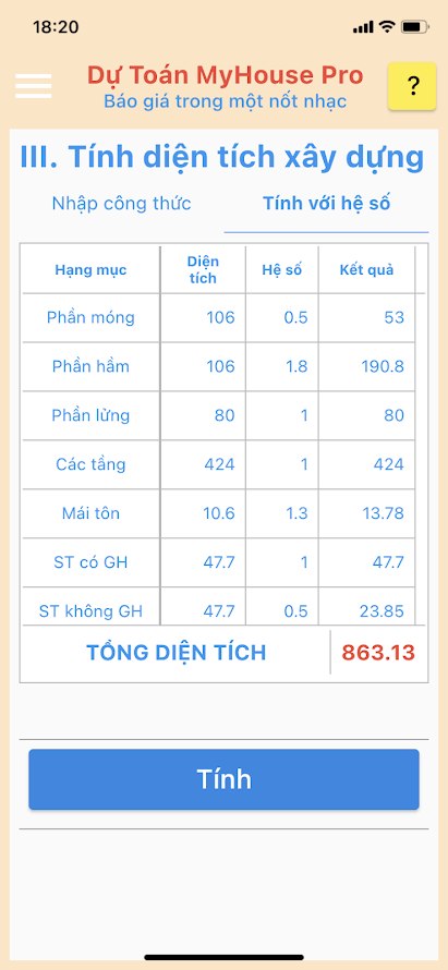 - Có luôn cả phần tính dự toán theo diện tích, rất trực quan, làm phần nào tính tiền phần đó, rất dễ giải trình và thuyết phục chủ nhà.
