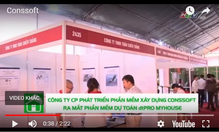Mời các bạn xem video chương trình nhà đẹp giới thiệu các đơn vị tham gia Vietbuild thứ 7 ngày 16/9/2017. Giới thiệu phần mềm dtPro MyHouse và cuốn sách "Cẩm nang Dự toán và Quản lý Chi phí Xây nhà" trong gian hàng của CONSSOFT tại triển lãm Vietbuild HCM tháng 12 năm 2017