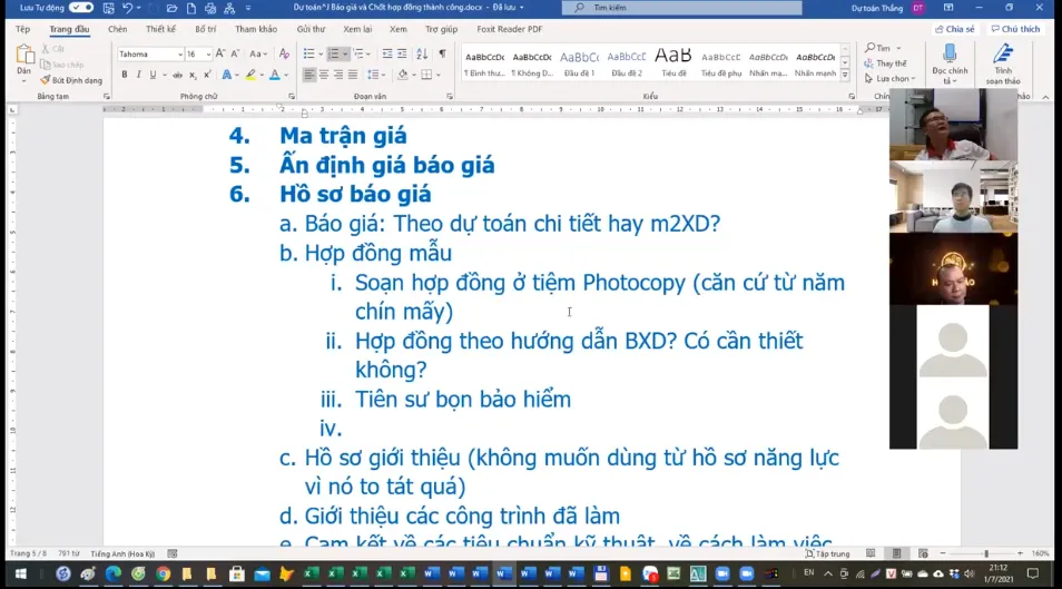 Video buổi học Dự toán nhà dân 19/2/2019