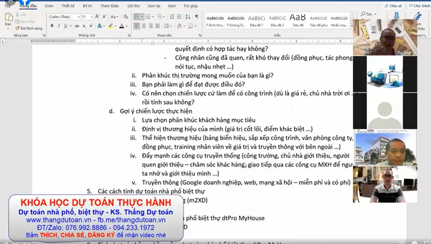 Livestream Thắng Dự toán: Dự toán nhà phố biệt thự
